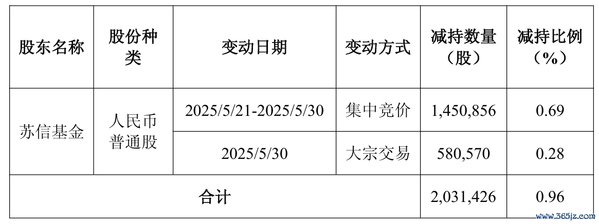 本次权益变动后,苏信基金持有公司股份1054.80万股,持股比例降至5%,不再是持有公司5%以上股份的股东。截至本公告披露之日,苏信基金的股份减持计划尚未实施完毕。